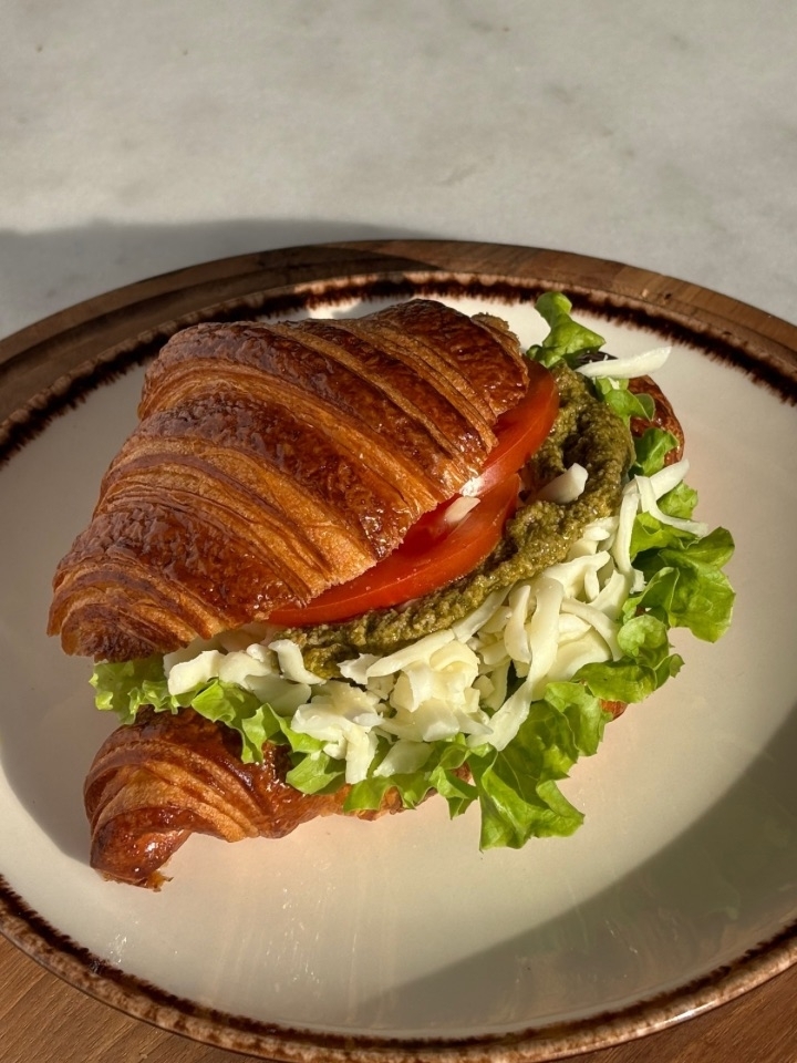 "Классический круассан Капрезе с моцареллой, свежими помидорами и песто. Превосходное сочетание для истинных ценителей итальянской кухни."