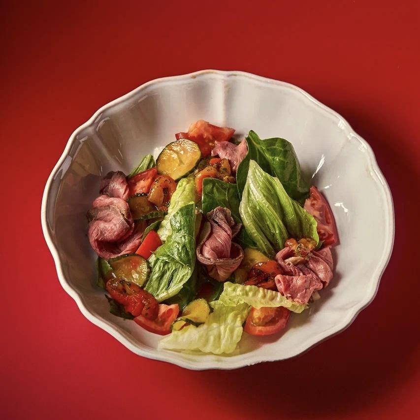 Салат с Ростбифом и соусом Чимичурри